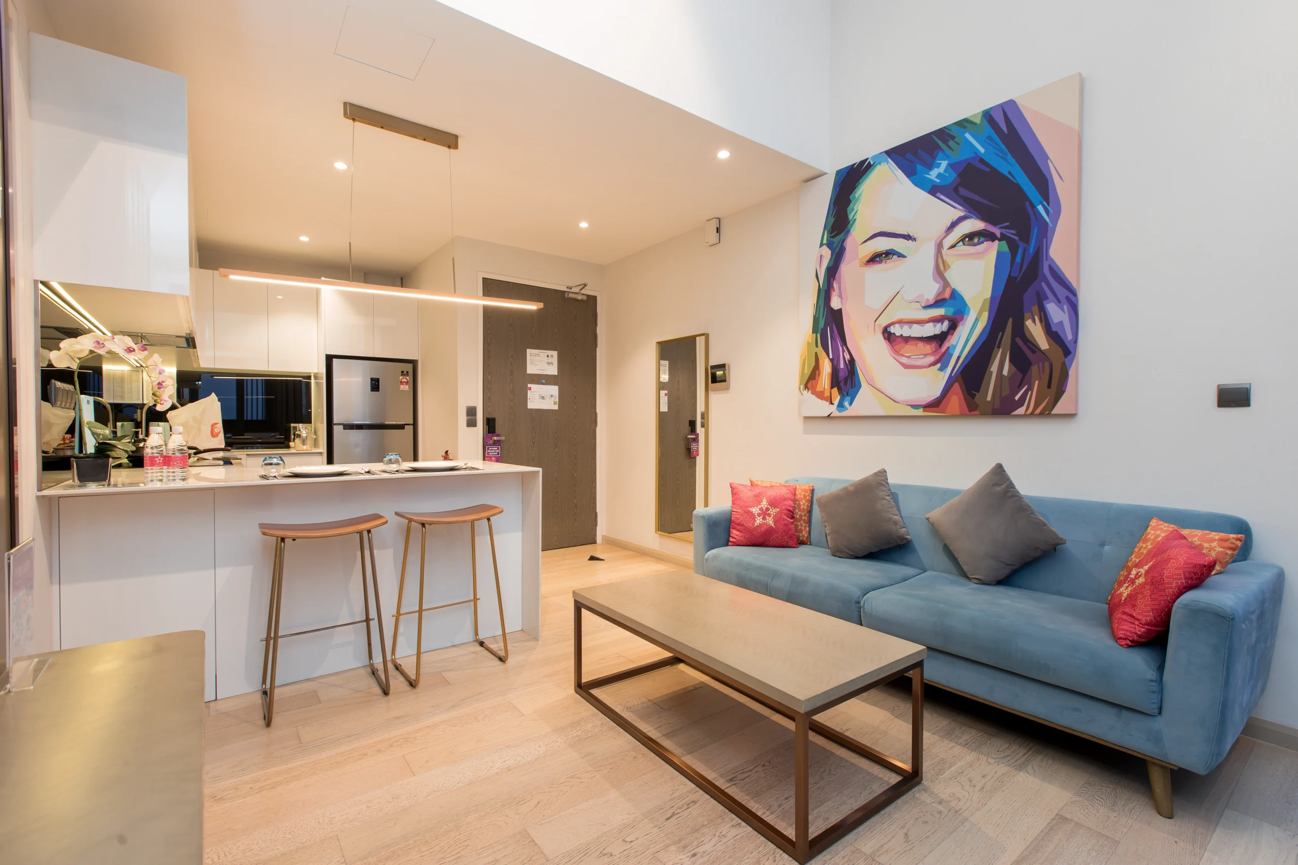 Our suites are more than just places to rest. They’re living canvases, where contemporary pop-art meets modern design. Every corner, from the curated artwork in the living areas to the bold color palettes, tells a story of creativity and innovation.